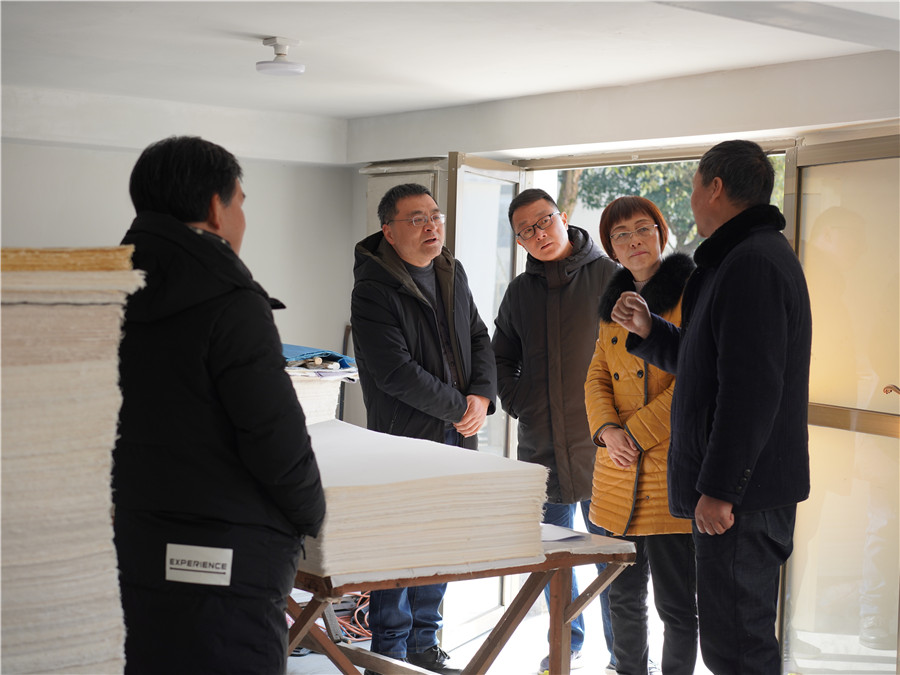 2021年1月26日,休寧縣政協(xié)主席儲曉華來公司調(diào)研徽州楮皮紙制作技藝傳承和發(fā)展情況。